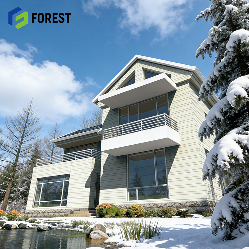 บ้านวิลล่าโครงสร้างเหล็กเบาสมัยใหม่ พร้อมประตูและหน้าต่างอลูมิเนียมอัลลอยด์ สำหรับอยู่อาศัย