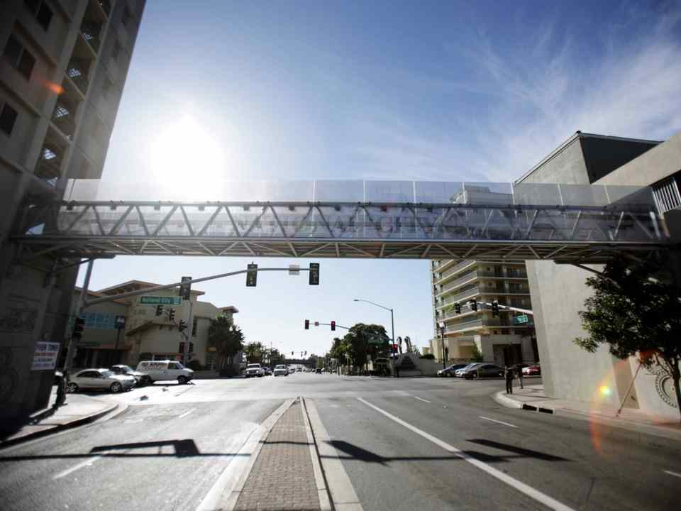 สะพานลอยโครงสร้างเหล็กสำหรับคนเดินเท้า โครงโลหะเหนือศูนย์เมือง