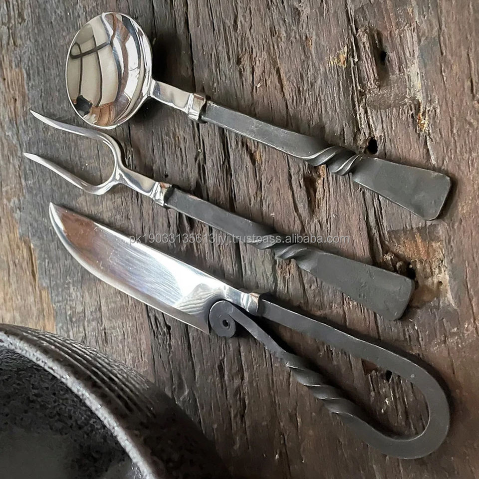ชุดเครื่องใช้บนโต๊ะอาหารแบบทำด้วยมือชุดมีดเหล็กปลอมแปลง