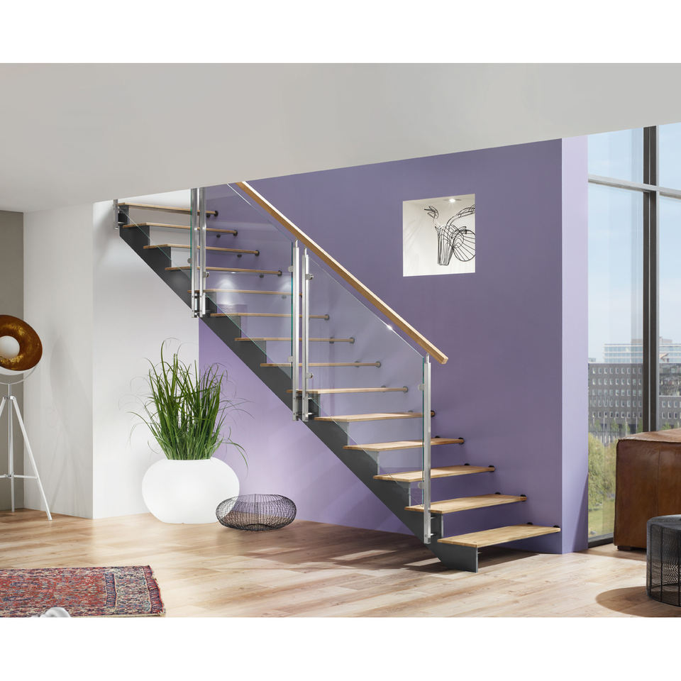 NOVA บันไดระบบตรงแบบทันสมัยการประยุกต์ใช้วิลล่าในร่มกลางแจ้งกระจกนิรภัยแบบทำมือตัวเลือกเหล็กโลหะไม้เนื้อแข็ง