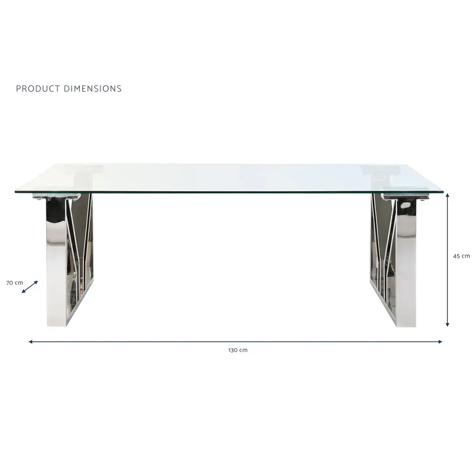 โต๊ะกาแฟเหล็กและกระจก 130x70x45 โครเมียม
