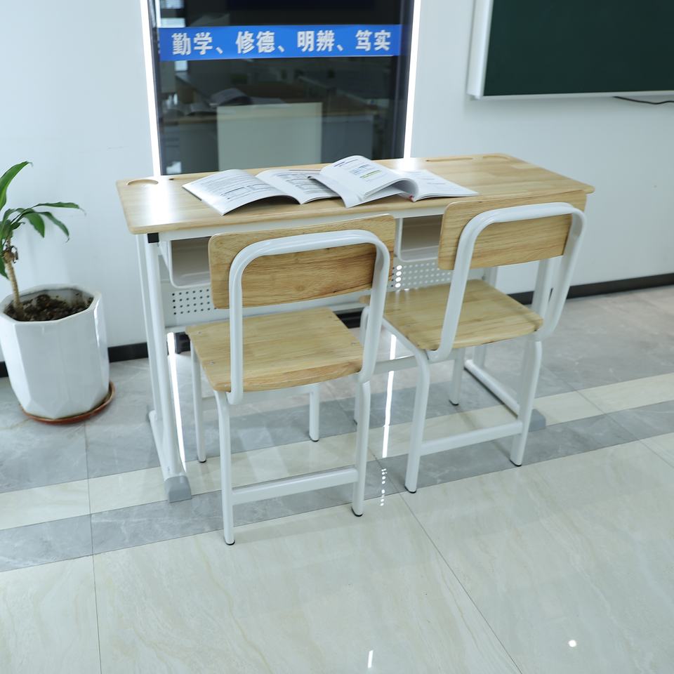 ชุดโต๊ะและเก้าอี้คู่เหล็กและไม้ โต๊ะและเก้าอี้สำหรับนักเรียนพร้อมแผงไม้ยางพาราคุณภาพสูง