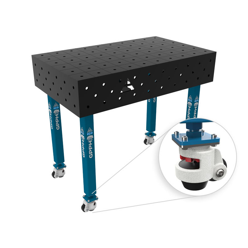 Steeleco gpph ม้านั่งเชื่อมแบบมีล้อ1x0.6ม. หนา8มม. รู16มม. ตารางขนาด100x100มม
