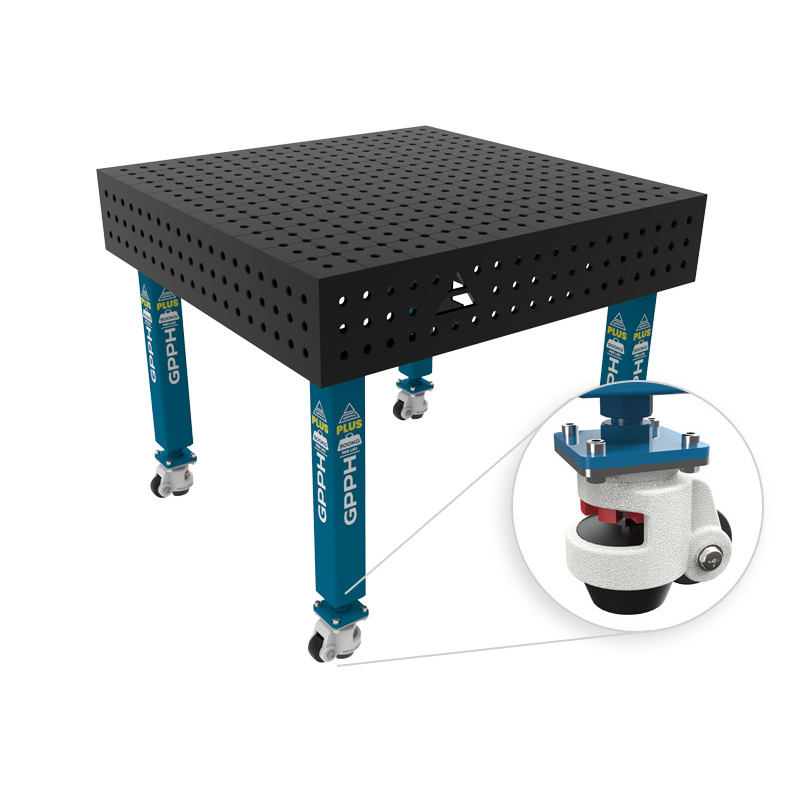 Steelplus gpph ม้านั่งเชื่อมแบบมีล้อ1x1ม. หนา12มม. รู16มม. ตาราง50x50มม.
