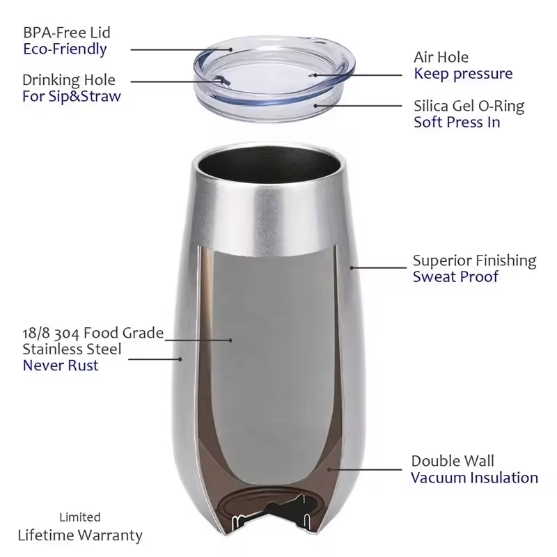 Product Name:6oz/10oz Champagne Flute Tumbler Custom LOGO