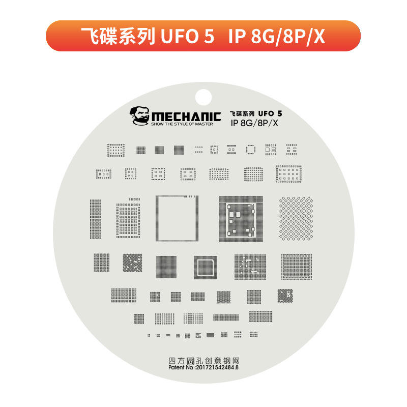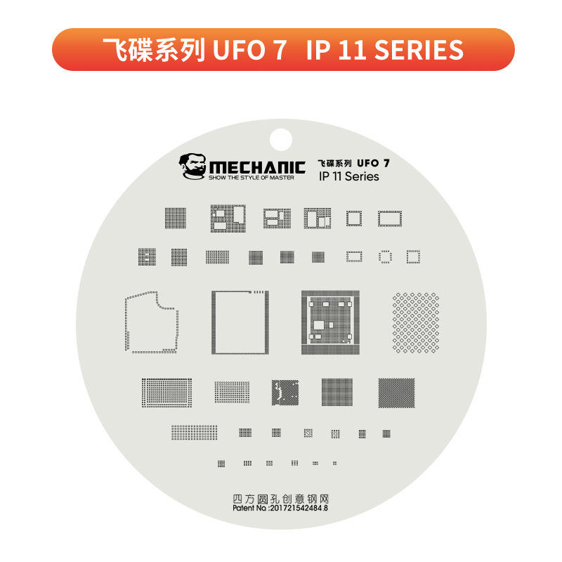 แม่พิมพ์สเตนซิลซ่อมแซมชิ้นส่วนอิเล็กทรอนิกส์ รุ่น UFO ทนความร้อนสูง รูสี่เหลี่ยมและรูกลม สำหรับงานรีบอล BGA บนไอโฟน 11 11pro 11 Pro Max