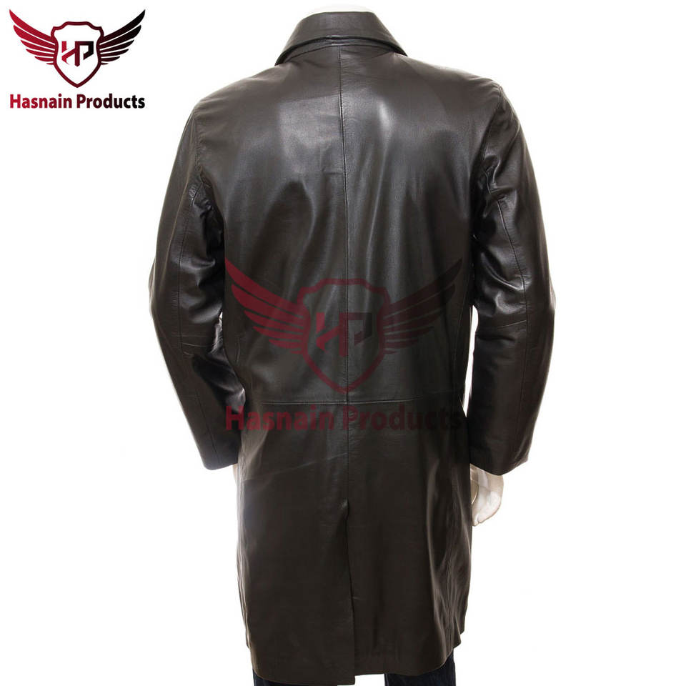 Step Into Style: Men's Black Leather Peacoat - Customize Your Elegance with Bespoke Tailoring Wholesale Price