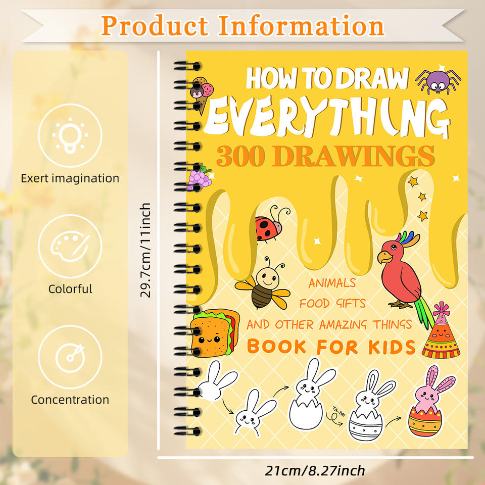 ทีละขั้นตอนวิธีการวาดทุกอย่างสมุดภาพวาดภาพ300ภาพประกอบหนังสือสำหรับเด็กสัตว์อาหารและอื่นๆ
