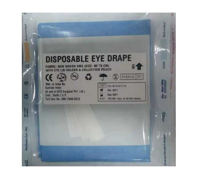 ผ้าคลุมตาแบบใช้แล้วทิ้งปลอดเชื้อพร้อมช่องติดกาวและถุงเก็บของเหลวสำหรับการผ่าตัดต้อกระจก