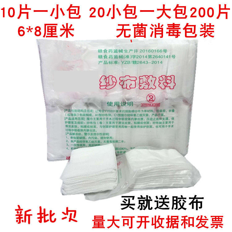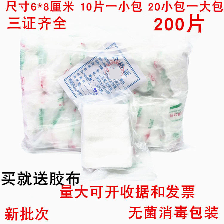 ผ้าก๊อซปลอดเชื้อ 6x8 ซม. 8 ชั้น 200 ชิ้นต่อแพ็ค สำหรับทำแผล ปิดแผล ใช้ทางการแพทย์ สีขาว ผลิตที่กวางตุ้ง