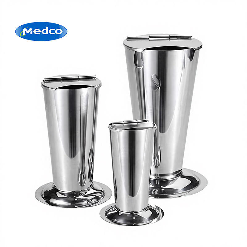 ที่วางแหนบฆ่าเชื้อ สแตนเลส 304 พร้อมฝาปิด รูปทรงกรวยคว่ำ เกรดทางการแพทย์ สีเงิน ชุดสามขนาด
