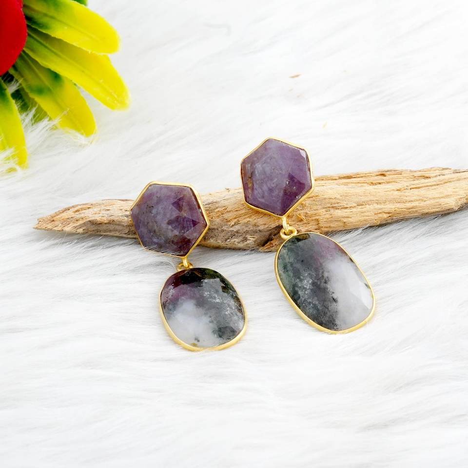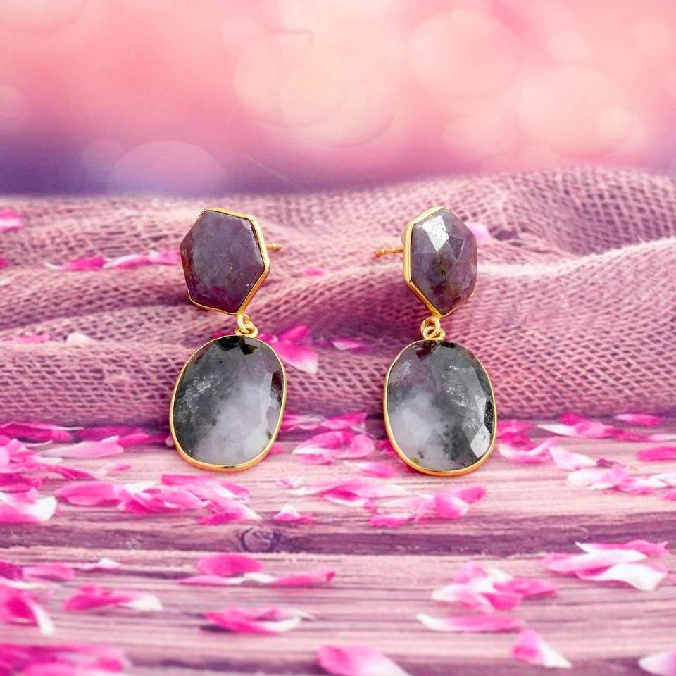 ต่างหูเงินแท้ 925 ชุบทอง ประดับพลอยไพลินหลากสี ต่างหูพลอยแท้ เครื่องประดับงานแต่งงานชั้นดี