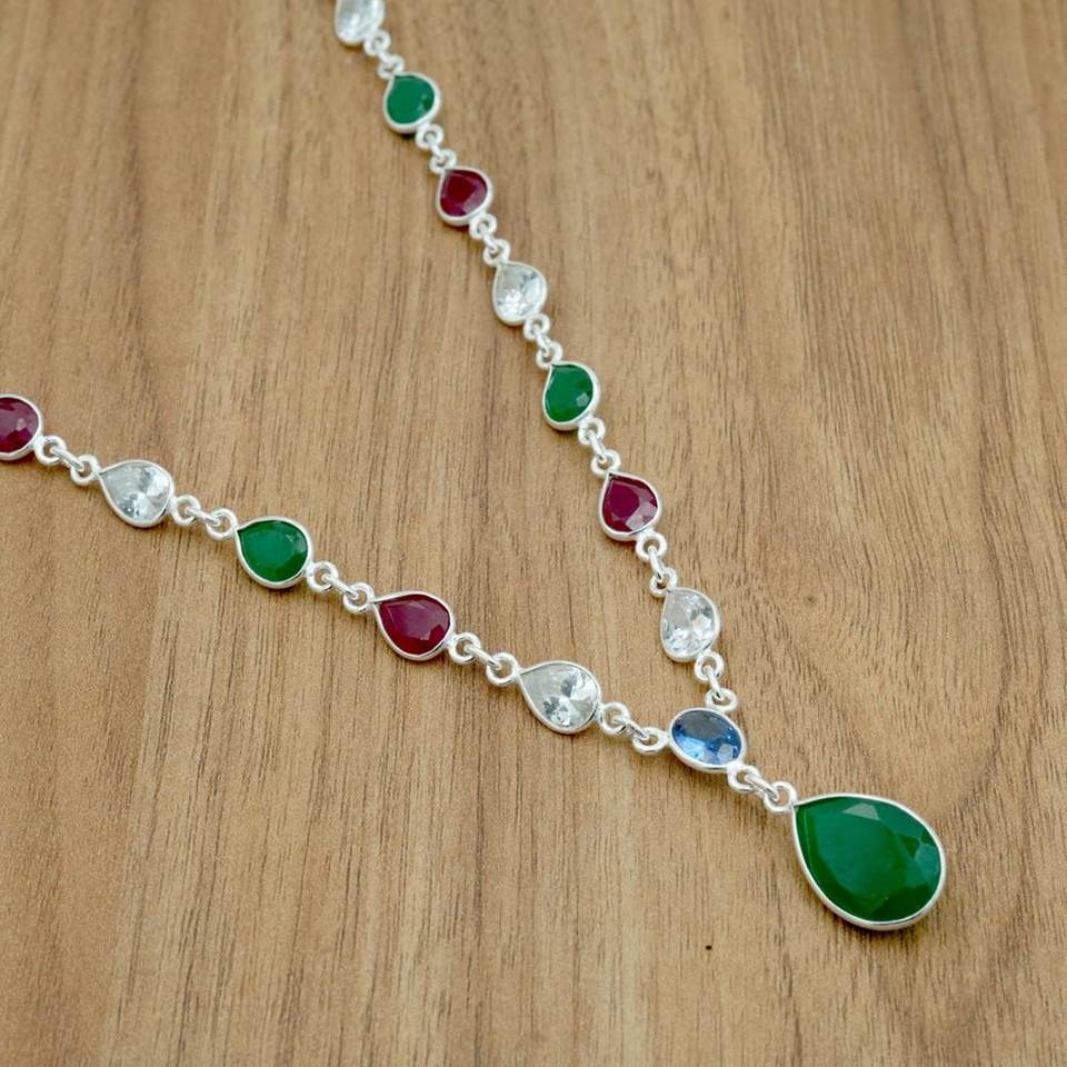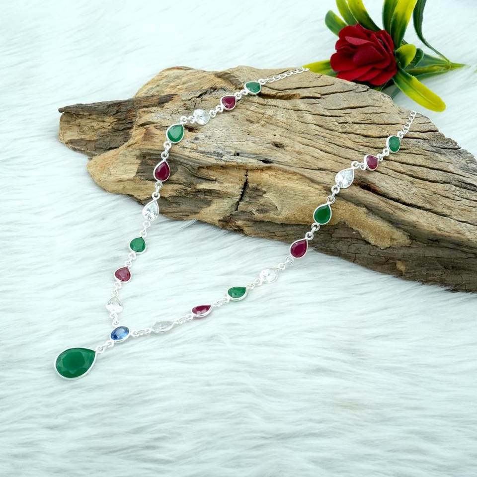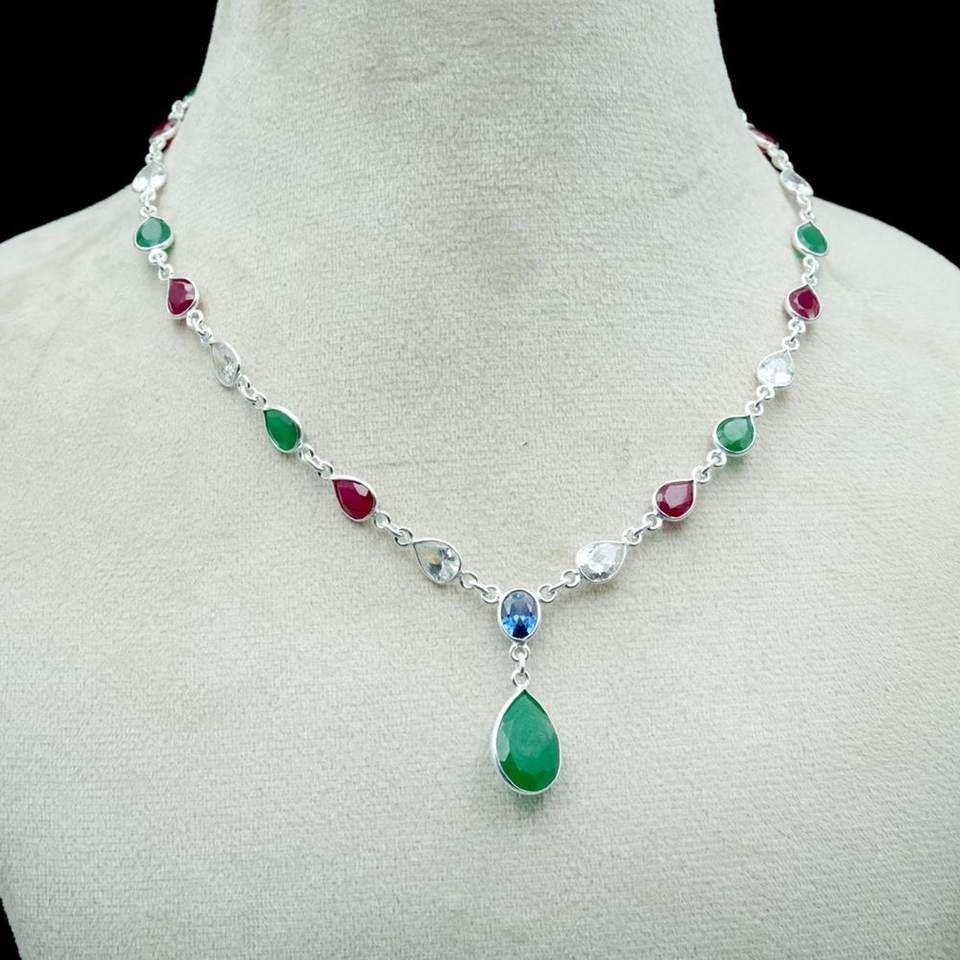 สร้อยคอเงินหลากสีสเตอร์ลิง925เงินจี้แฟชั่นของขวัญแต่งงานสำหรับเธอด้วย NL0208-GS อัญมณีธรรมชาติมรกตและทับทิม