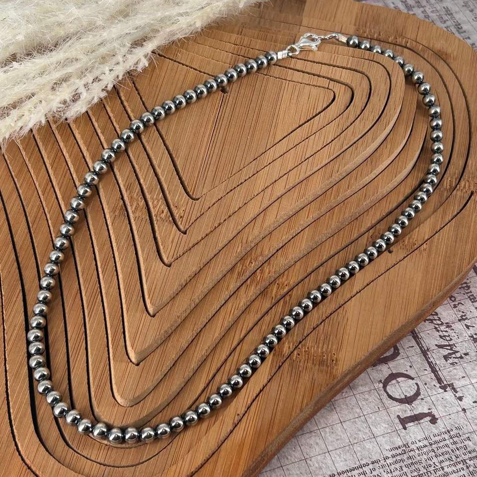 สร้อยคอไข่มุกสเตอร์ลิง18นิ้ว5มม. สายห้อยหรูหราเครื่องประดับทำด้วยมือเงินสเตอร์ลิงของขวัญสำหรับผู้หญิง