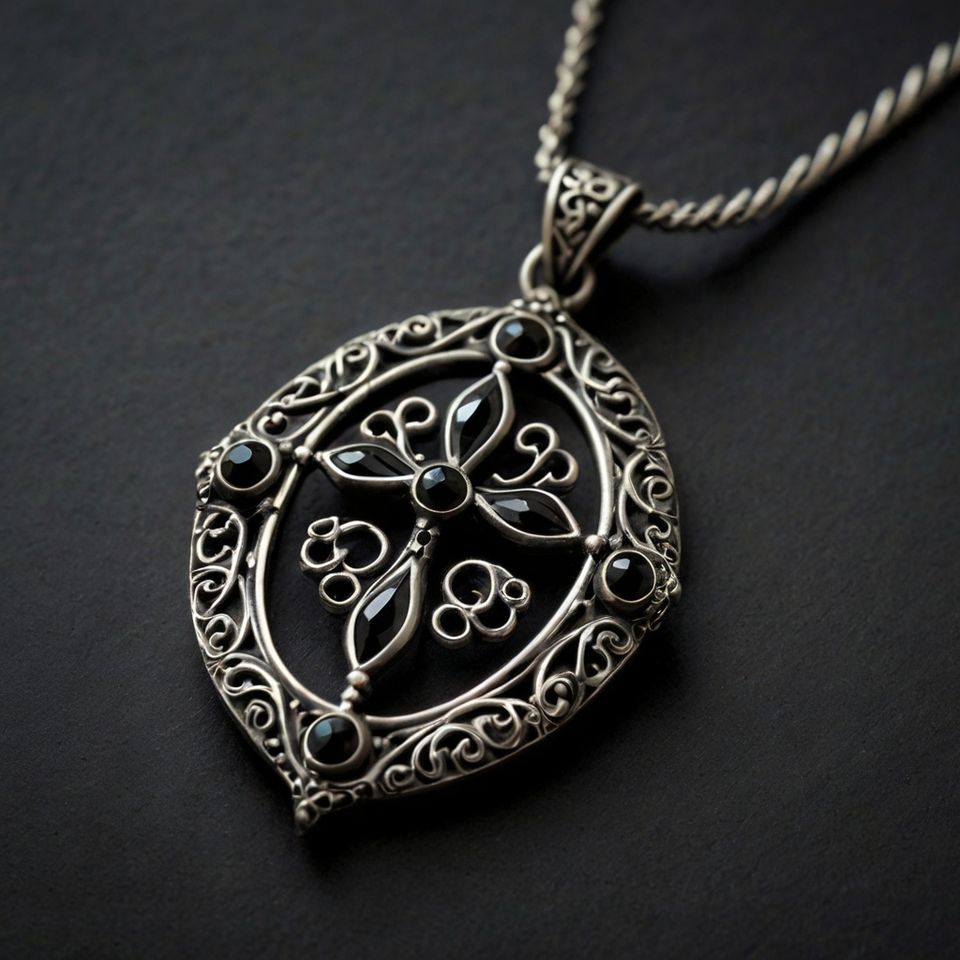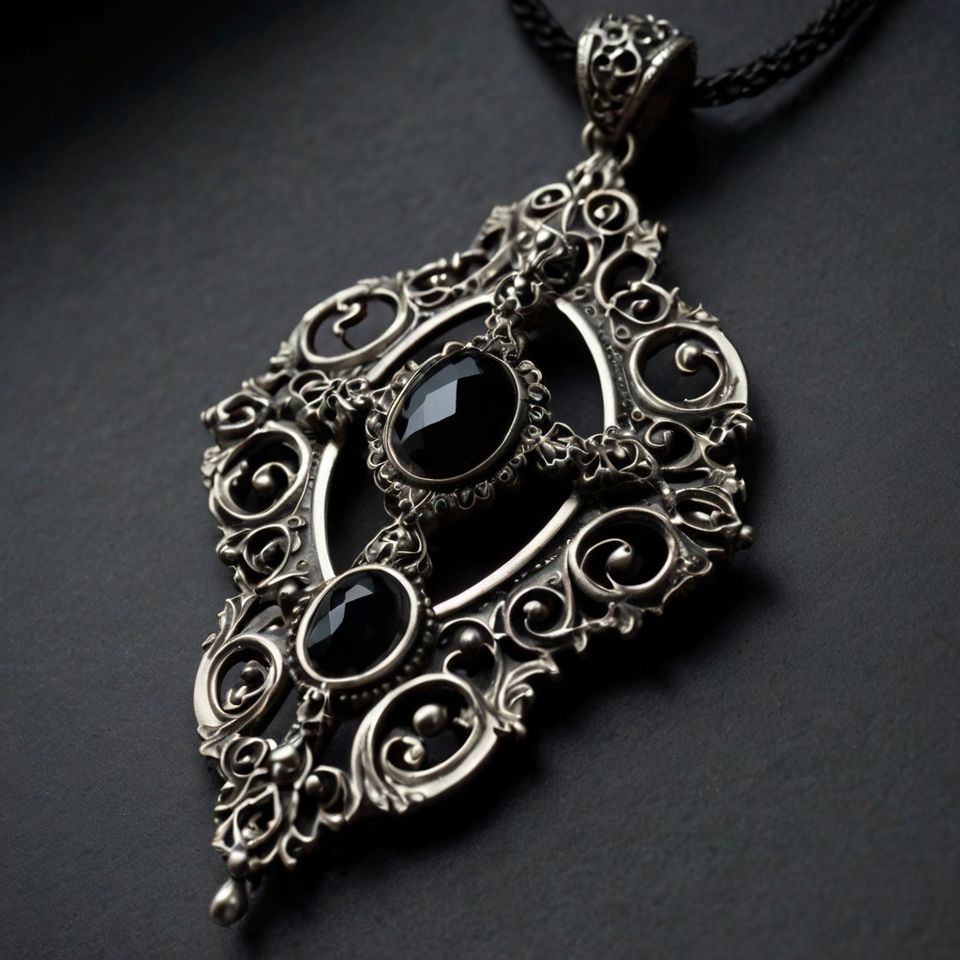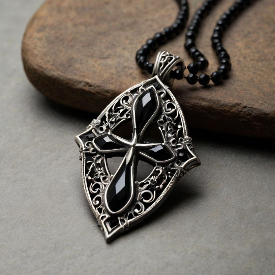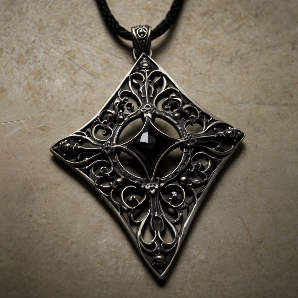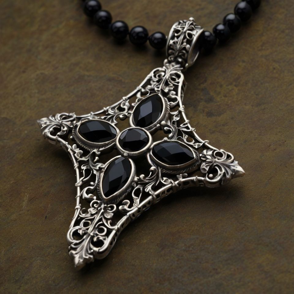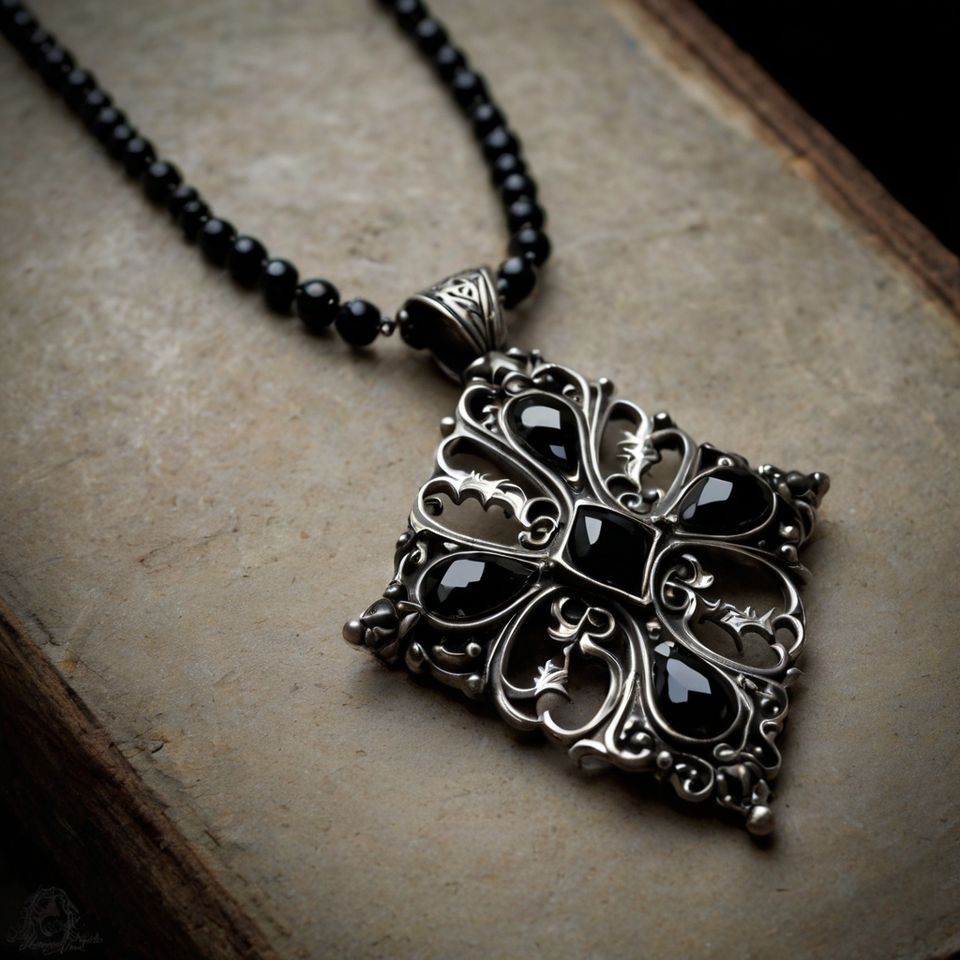 จี้แพลตตินั่มแบล็คออนิกซ์ลายเฟลอร์เดลิส สไตล์กอธิคแบบฝรั่งเศส เครื่องประดับหรูหรา สัญลักษณ์ราชวงศ์