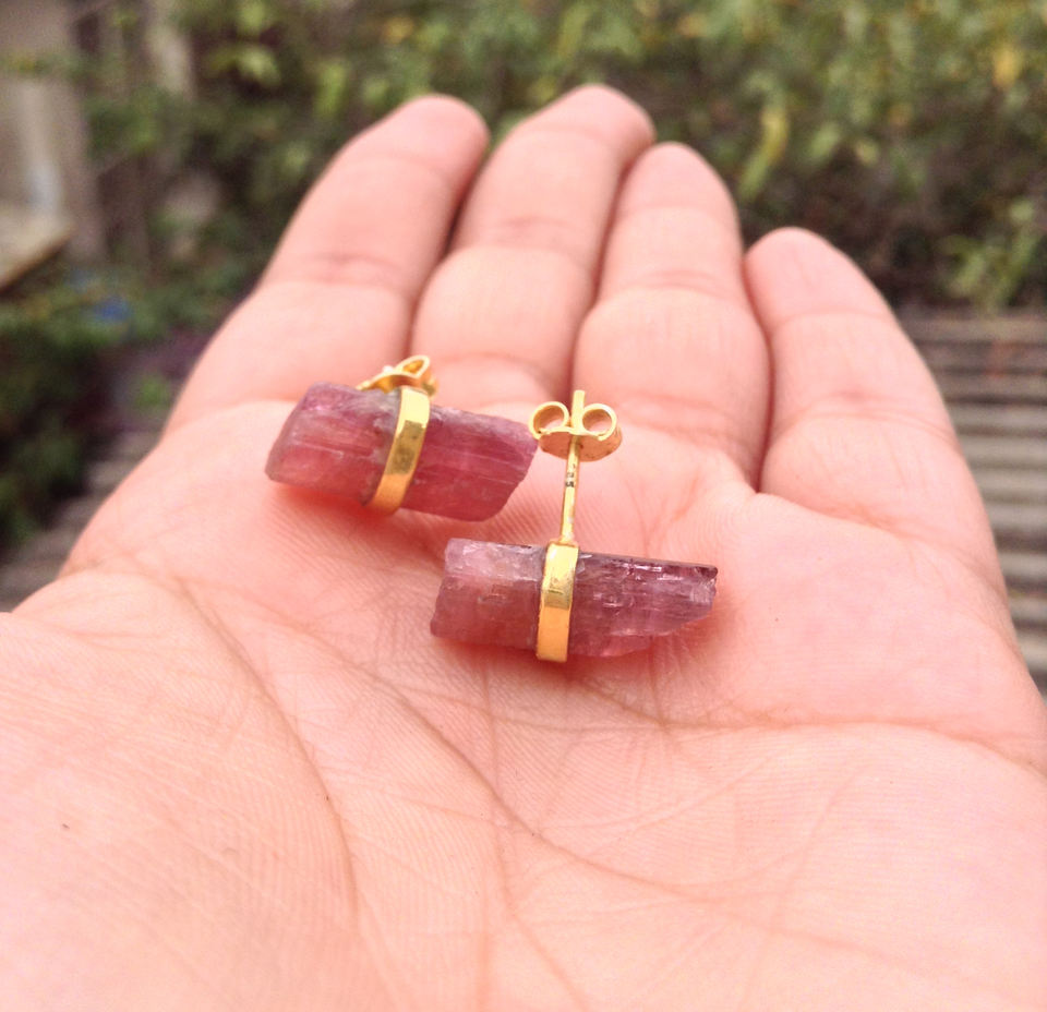 เงินสเตอร์ลิง 925 ชุบทองที่กําหนดเองขายส่งผู้ผลิตเครื่องประดับหยาบอัญมณีสุภาพสตรีสวมต่างหูสตั๊ด
