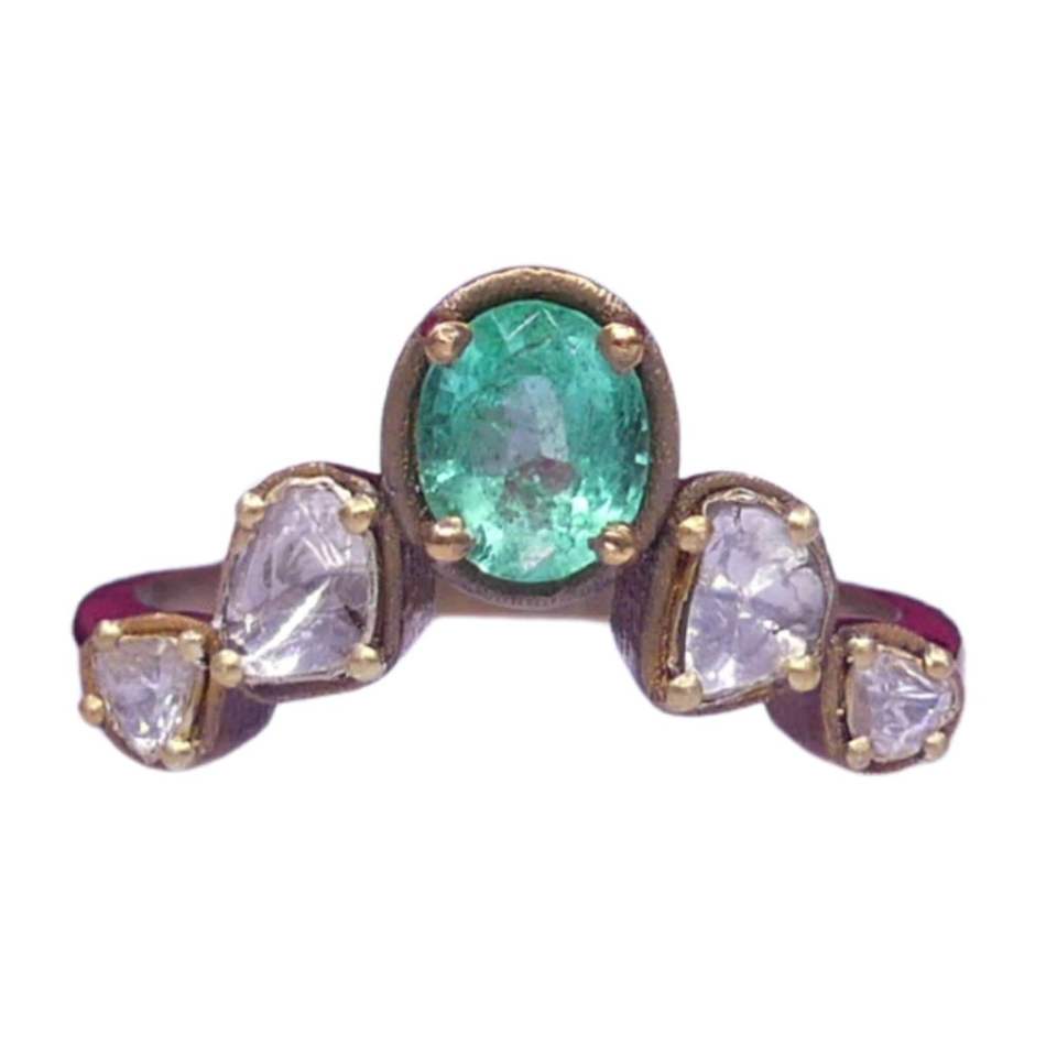 แหวนเงินแท้ 925 ชุบทอง ประดับมรกตทรงโพลกี้ สำหรับทุกเพศทุกวัย สั่งซื้อขั้นต่ำน้อย สไตล์โบราณ