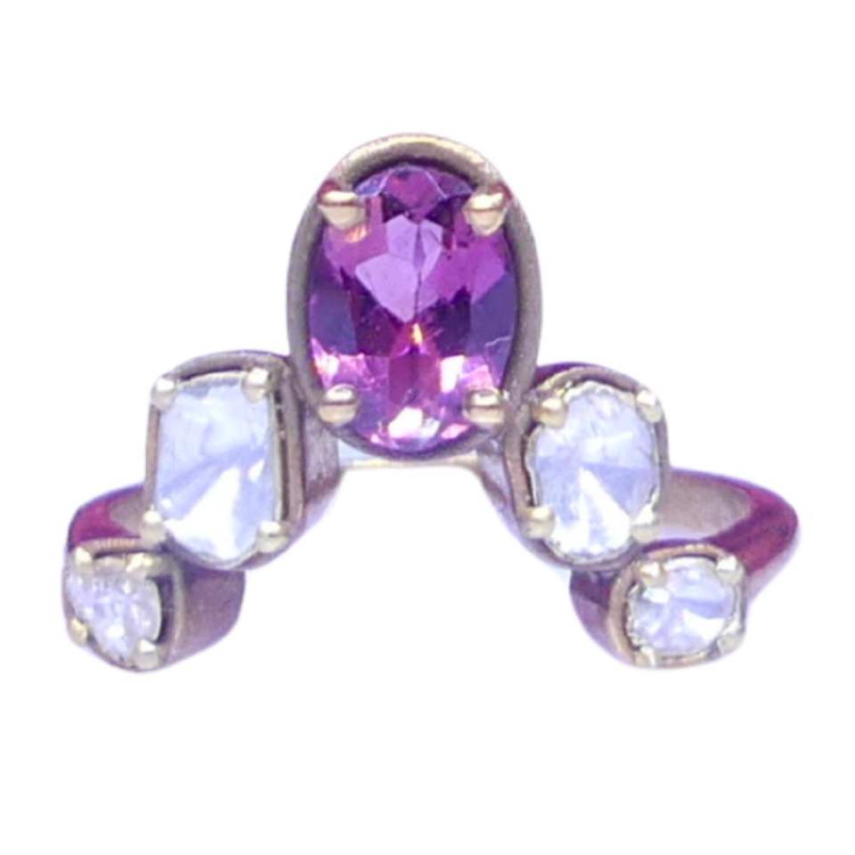 แหวนเงินแท้ 925 ชุบทอง ประดับพลอยทัวร์มาลีน ทรงโบราณ สำหรับทุกเพศ สั่งซื้อขั้นต่ำน้อย