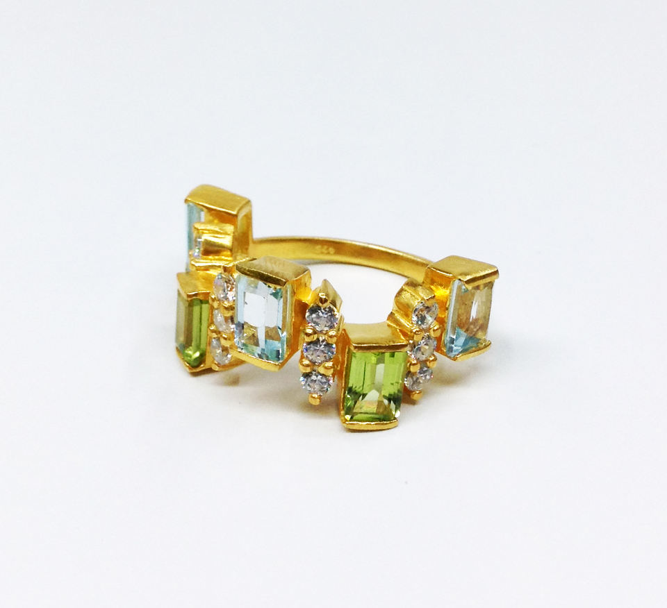 ผู้ค้าส่งที่กำหนดเองทำด้วยมือ Unisex หลายสีแหวนพลอยเงินสเตอร์ลิง925ชุบทองคดเคี้ยวไปมาผู้ผลิตเพชร