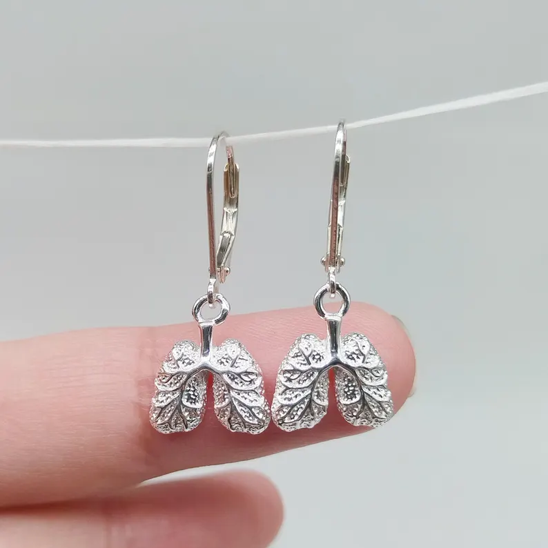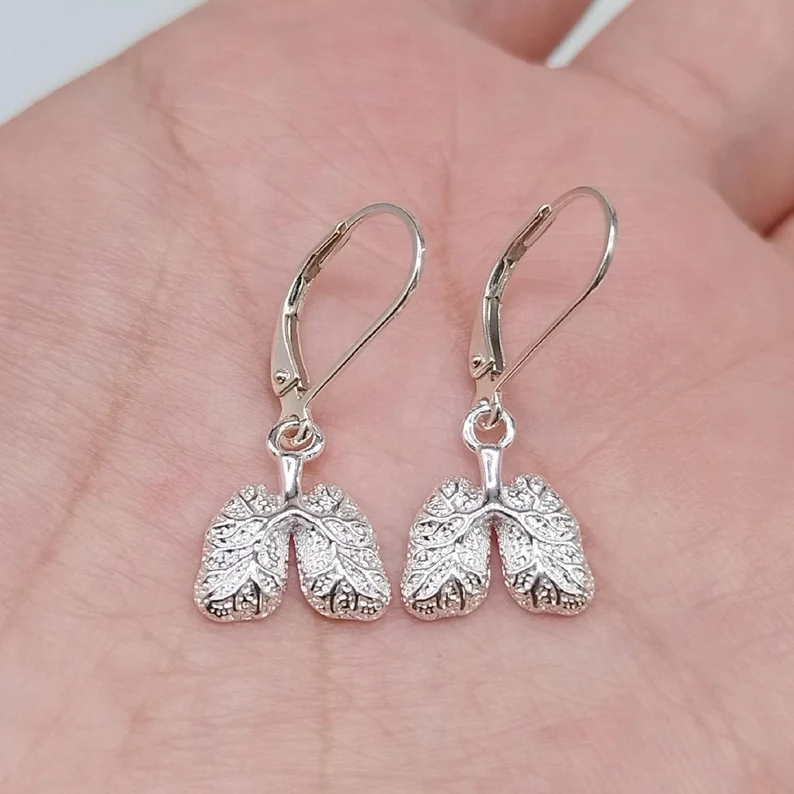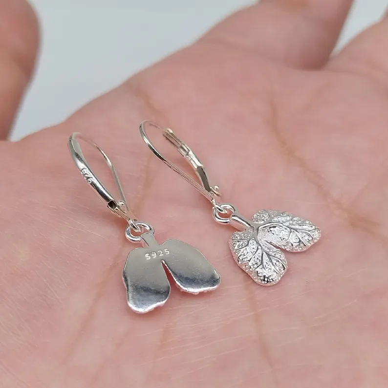 เงินสเตอร์ลิง925คันโยกปอดกลับต่างหูกายวิภาคปอดเครื่องประดับกายวิภาค