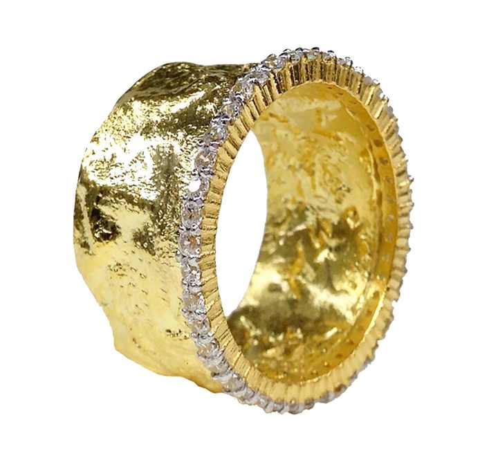 แหวนเงินแท้925ชุบทองสีเหลืองทำด้วยมือวงแหวนเซอร์คอนโทแพซเพชรสีขาว
