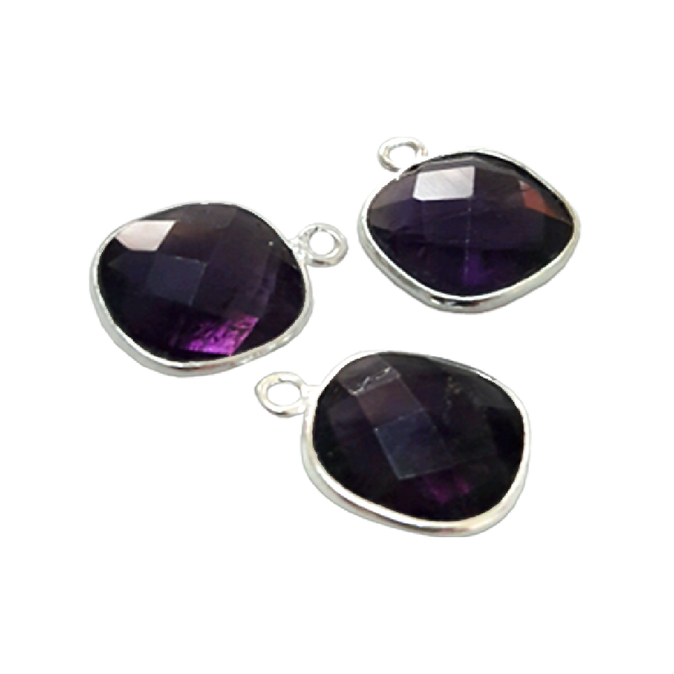 Sterling Silver Amethyst Drop CHARM Sterling Silver Bezel Gemstone Connectors for Jewelry Making