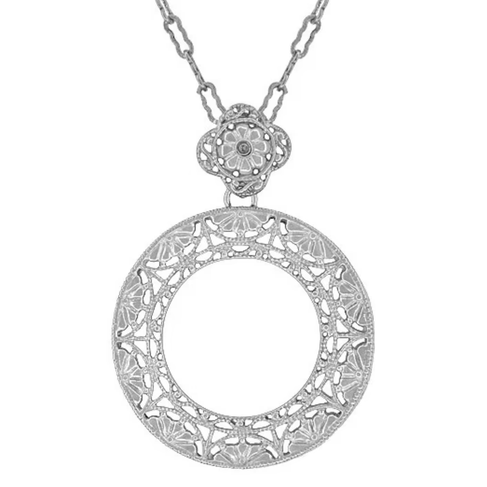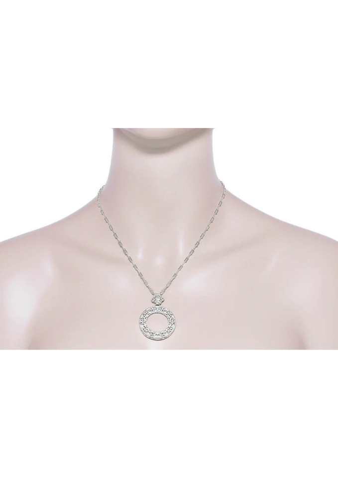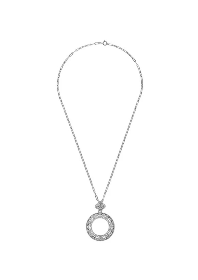 สร้อยคอจี้เงินแท้สไตล์อาร์ตเดโค ลายวงกลมนิรันดร์ ประดับลายฉลุ ชุบโรเดียม ประดับพลอยไพลิน วินเทจ สำหรับงานปาร์ตี้ พร้อมสายเชื่อมต่อ