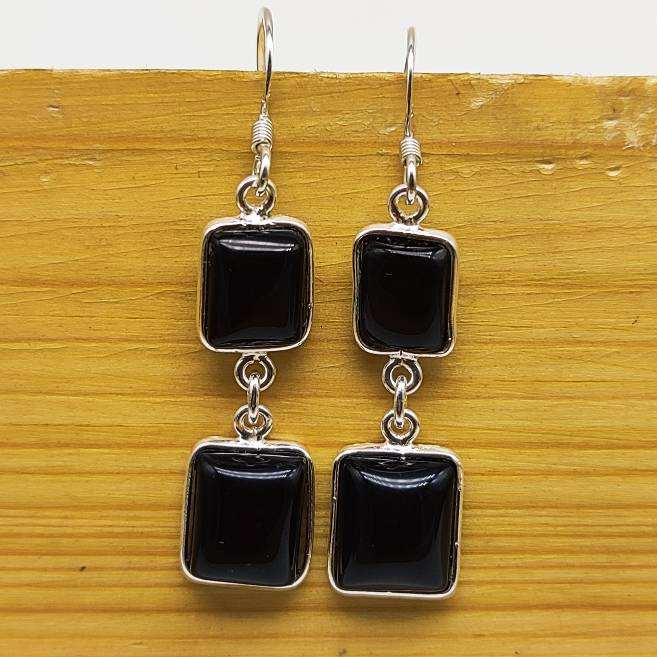 สเตอร์ลิงเงินสีดำนิลอัญมณีต่างหูยาวของขวัญสำหรับช่างฝีมือของเธองานฝีมือออกแบบต่างหูเงินห้อยขายส่ง