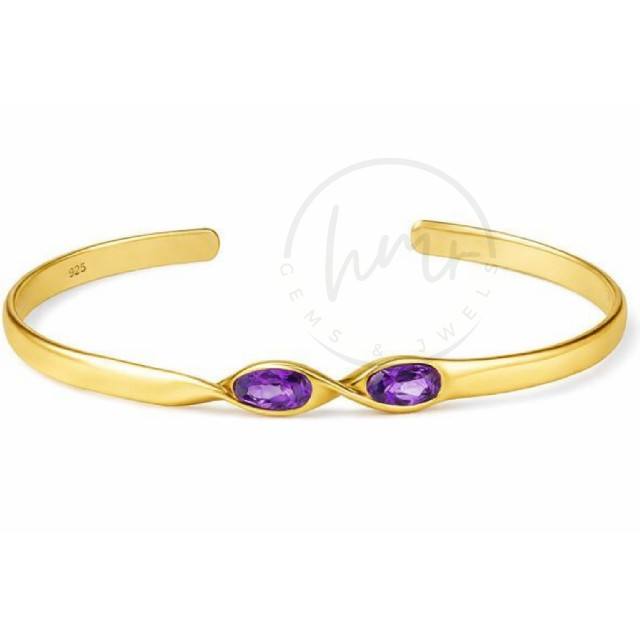 กำไลข้อมือเงินแท้ 925 ประดับอัญมณีอเมทิสต์และชุบทอง เครื่องประดับแฟชั่นสำหรับผู้หญิง