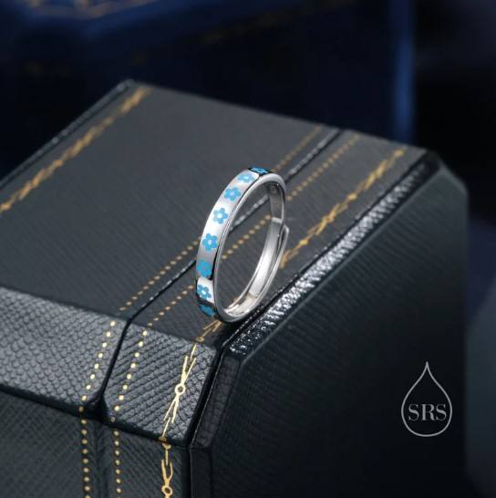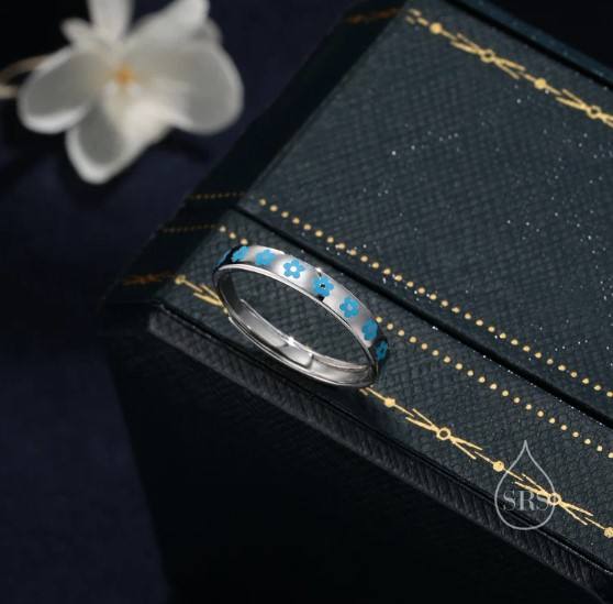 แหวนเงินแท้ลายดอกไม้สุดน่ารัก ปรับขนาดได้ แหวนดอกไม้เคลือบเงา แหวนดอกไม้เล็กๆ สวยงามและอ่อนโยน