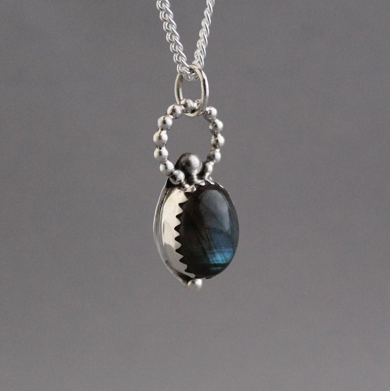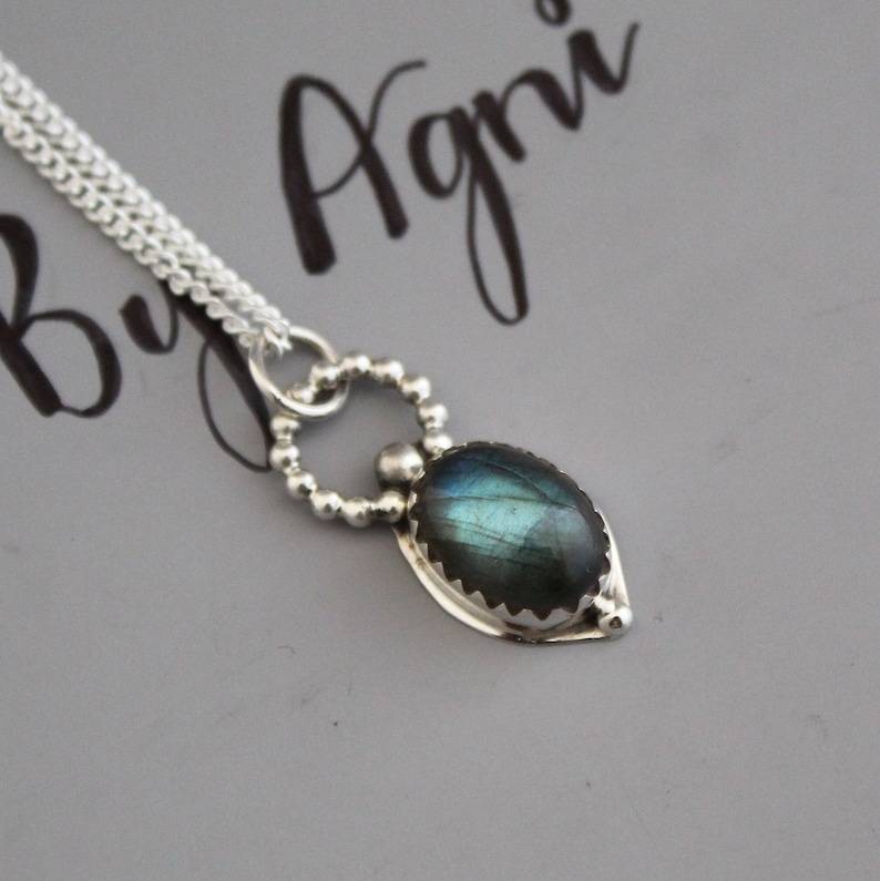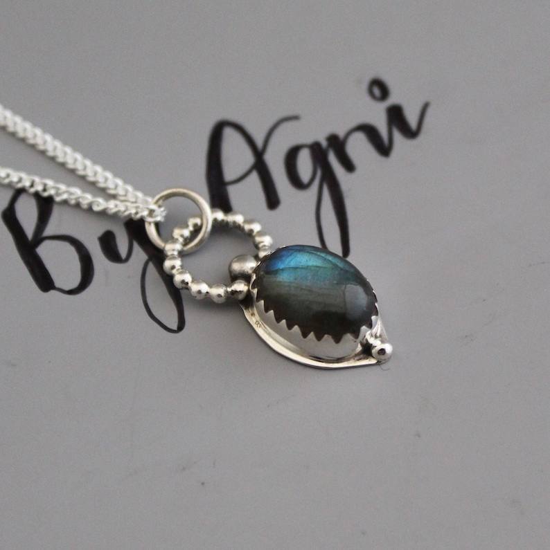 สร้อยคอจี้หินลาบราดอไรต์วินเทจชุบทองเงินสเตอร์ลิงของขวัญงานหมั้นดีไซน์เรียบง่ายทำจากหินแท้