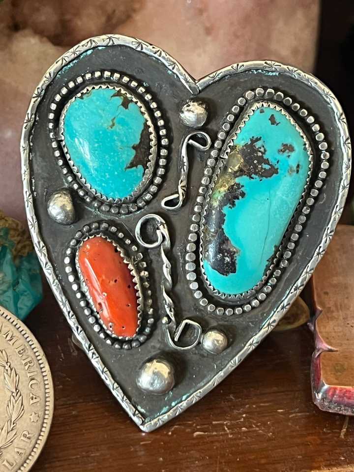 แหวนเงินแท้ทรงหัวใจสีเงินแท้สีเทอร์ควอยส์และปะการังเมดิเตอร์เรเนียนเปลือกหอยหอยนางรมหนาม925เงิน