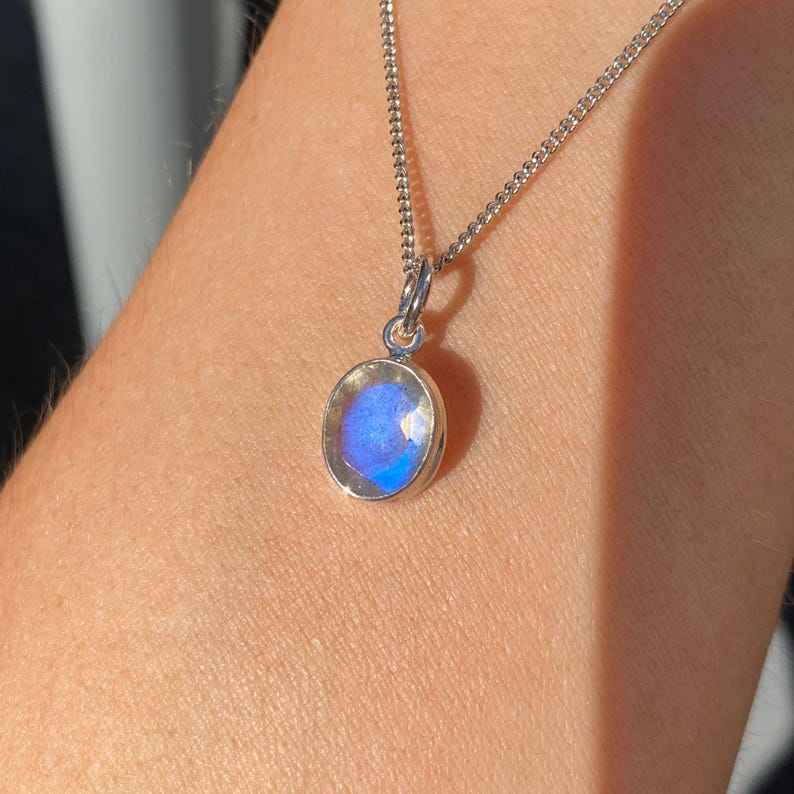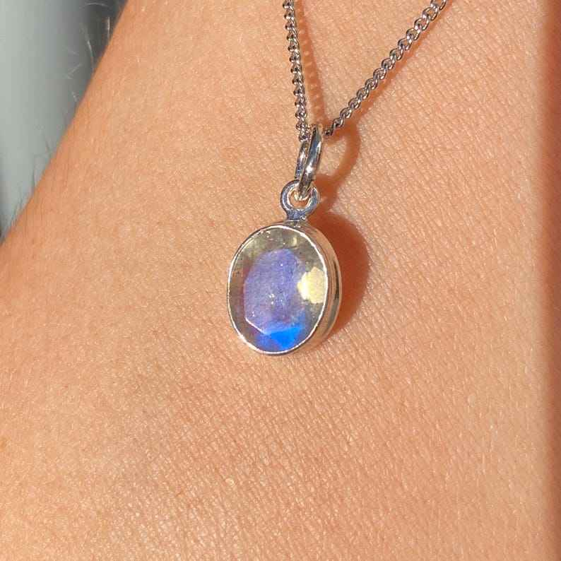 จี้หินลาบราดอไรต์เงินสเตอร์ลิงประดับด้วยไฟสีฟ้าขนาด8x10มม. อัญมณีที่ไม่เหมือนใครสำหรับผู้หญิงที่มีการตั้งค่าหนามเตย