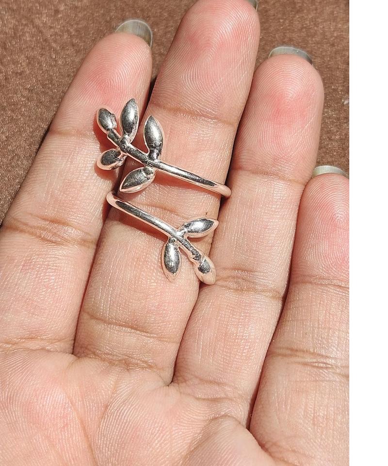 แหวนเงินแท้สำหรับผู้หญิงปรับได้แหวนเถาออกซิไดซ์ทำด้วยมือเครื่องประดับธรรมชาติโบโฮของขวัญอันโอชะสำหรับเธอ