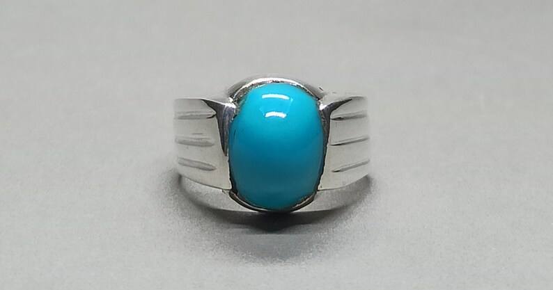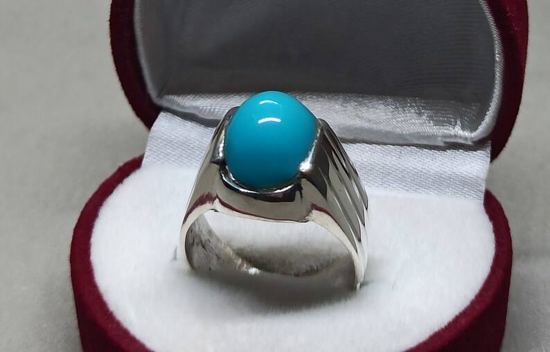 แหวนเงินสเตอร์ลิงประดับพลอยเทอร์ควอยซ์ทรงรี งานแฮนด์เมด หินเนชาปุรี ฟิโรซ่า ดีไซน์คลาสสิก