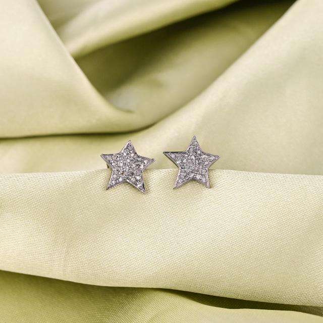 ต่างหูเม็ดเดี่ยวรูปดาวขนาด10มม. x 10มม. สีเงินสเตอร์ลิงประดับเพชรปูสำหรับเป็นของขวัญงานหมั้นวันครบรอบหรืองานเลี้ยง