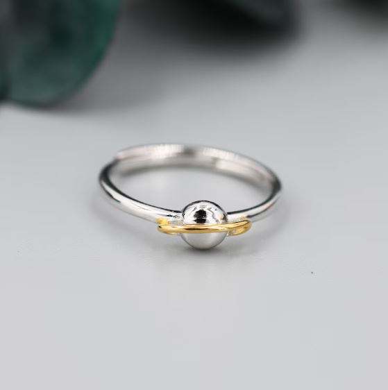 แหวนเงินแท้รูปดาวเคราะห์ ปรับขนาดได้ แหวนรูปดาวเสาร์ สวยงามและอ่อนช้อย