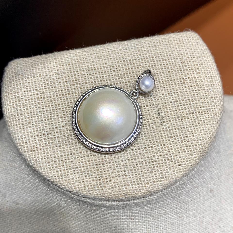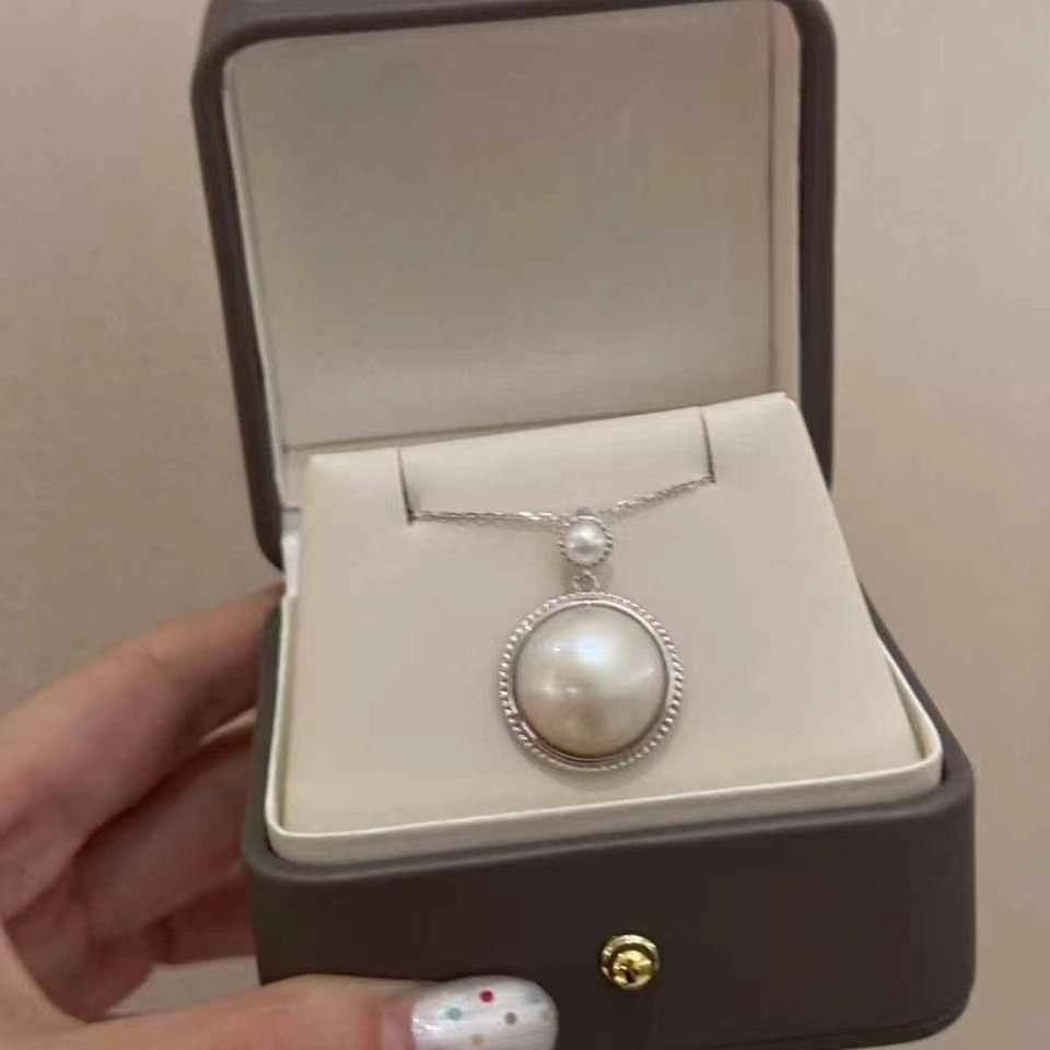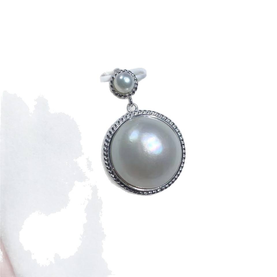 จี้เงินแท้ประดับมุกเซาท์ซีทรงกลมขนาด 15-16 มม. แบบฝังขอบ ดีไซน์คลาสสิก เครื่องประดับสำหรับผู้หญิง เหมาะสำหรับใส่ทุกวัน
