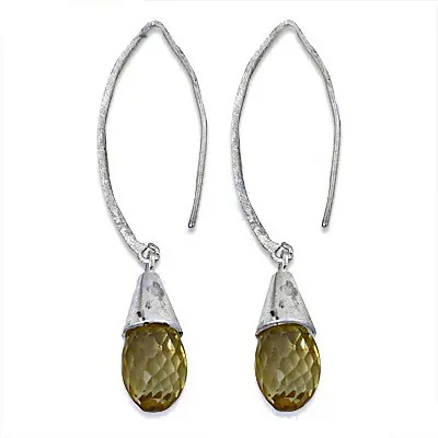 ต่างหูเงินแท้ทรงหยดน้ำสำหรับผู้หญิงประดับพลอยซิทริน