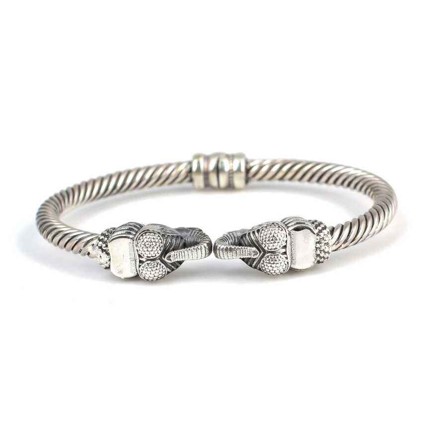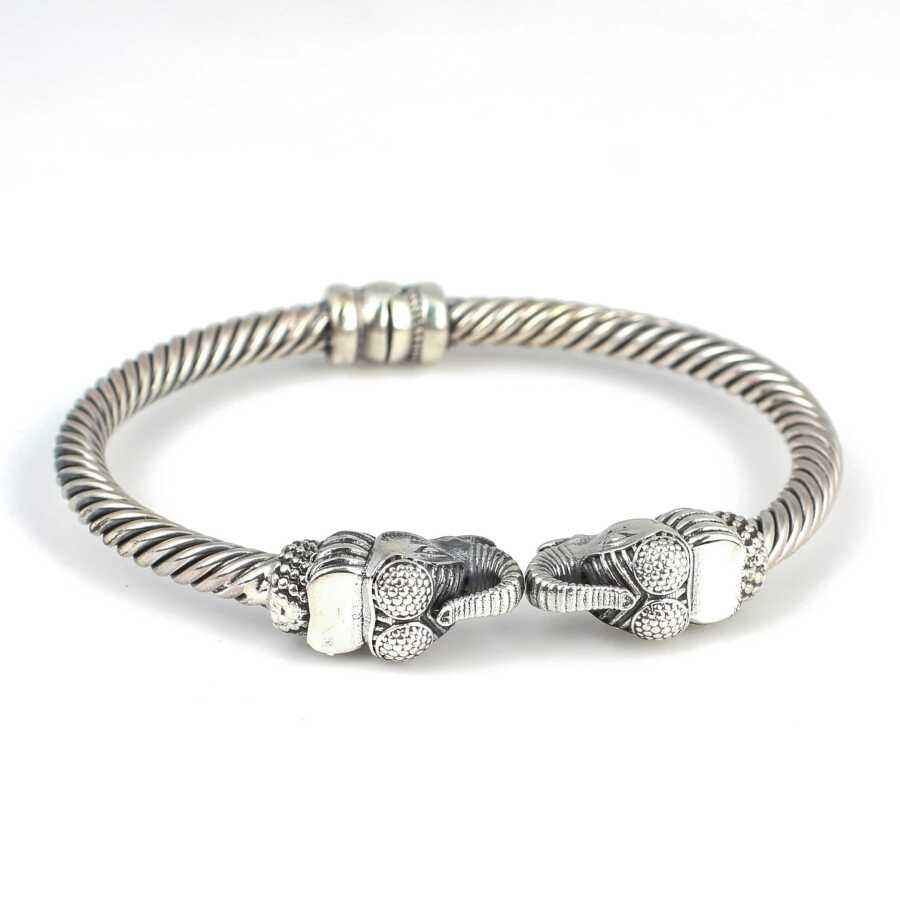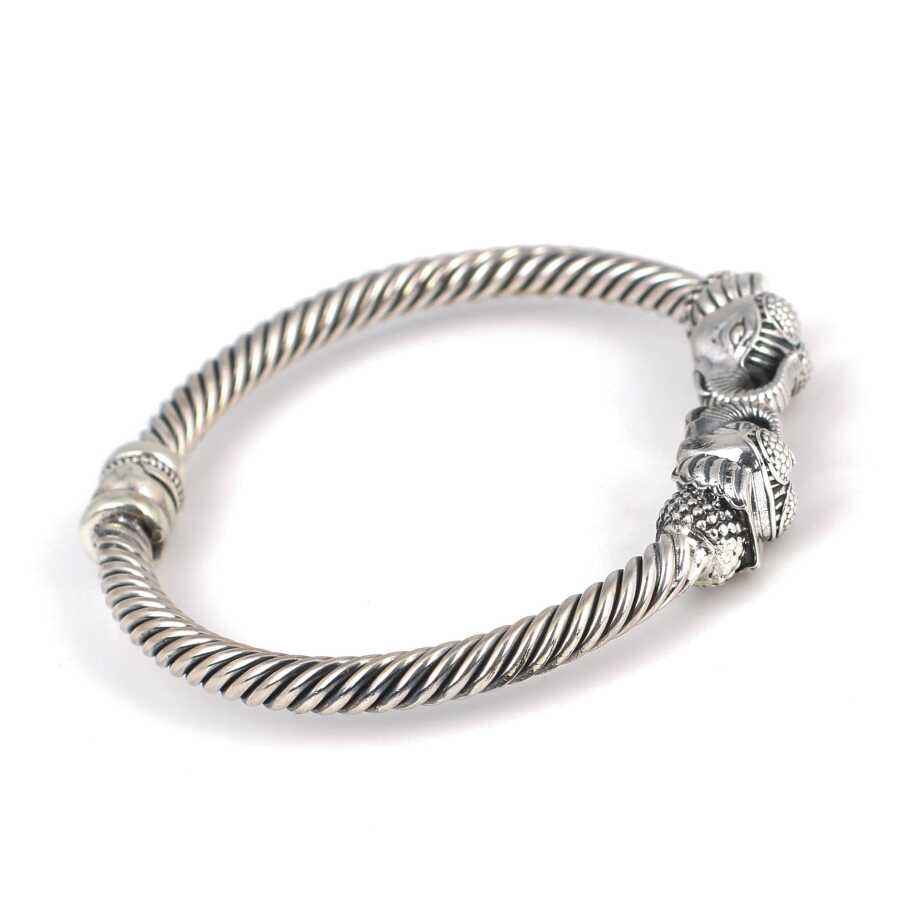 สร้อยข้อมือเงินแท้รูปหัวช้างแบบสปริงสำหรับทุกเพศ ดีไซน์โซ่เส้นเล็กและแบบเชื่อมต่อ น้ำหนัก 32.57 กรัม เส้นผ่านศูนย์กลาง 6.3 ซม.