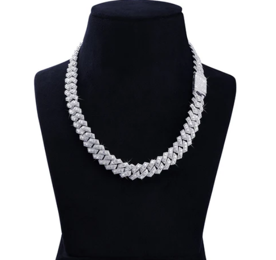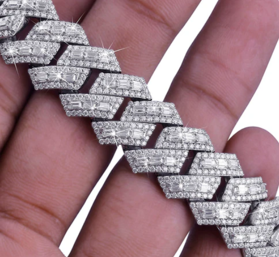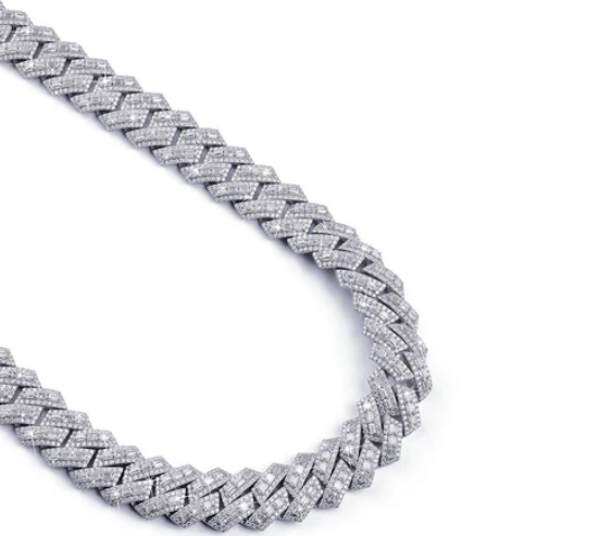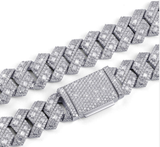 สร้อยคอเงินแท้ทรงฮิปฮอปประดับเพชรโมอิสซาไนต์เจียระไนทรงปรินเซส VVS1 ผ่านการทดสอบเพชรเต็มรูปแบบ ดีไซน์ซิกแซกแบบคิวบันลิงค์