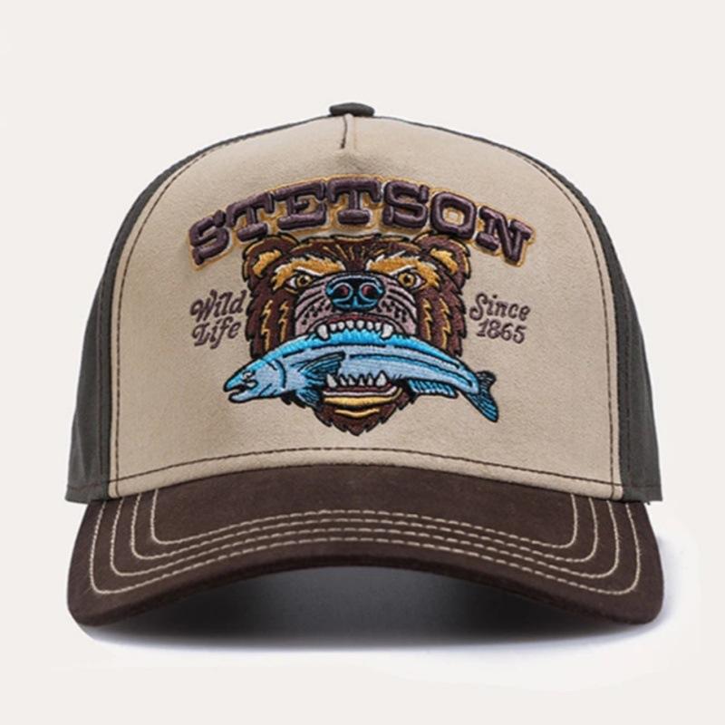 หมวกแก๊ปสเต็ตสันทรงทรัคเกอร์ ระบายอากาศได้ดี ลายปักรูปหมี เหมาะสำหรับกิจกรรมกลางแจ้งและสวมใส่สบายๆ