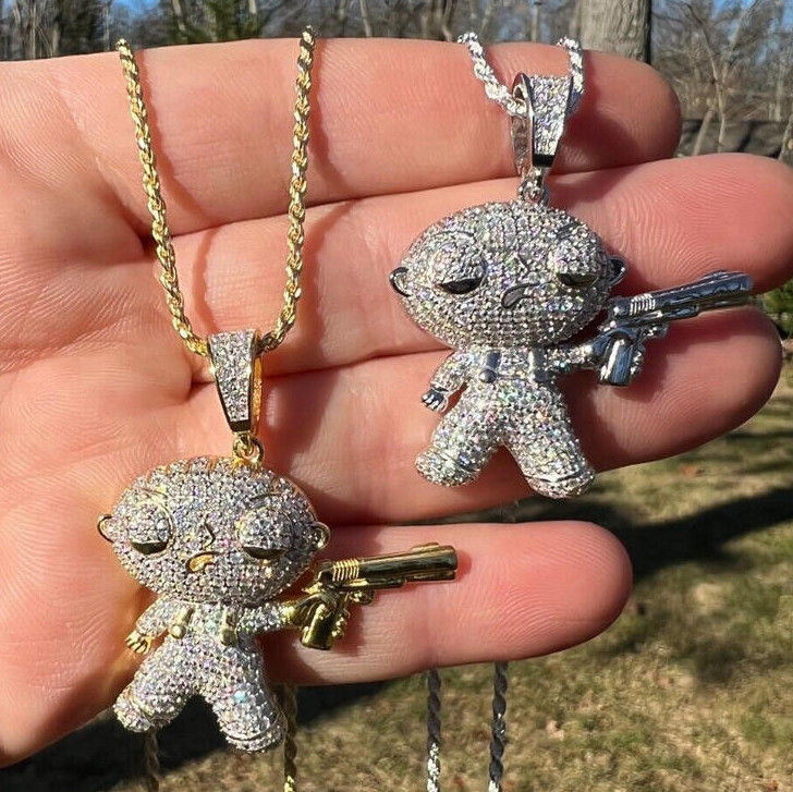 Stewie กริฟฟินจากห้องแล็บจี้ฮิปฮอปประดับเพชรงานแฮนด์เมดเครื่องประดับคลาสสิกและเท่ห์ในทองคำ10K 14K 18K