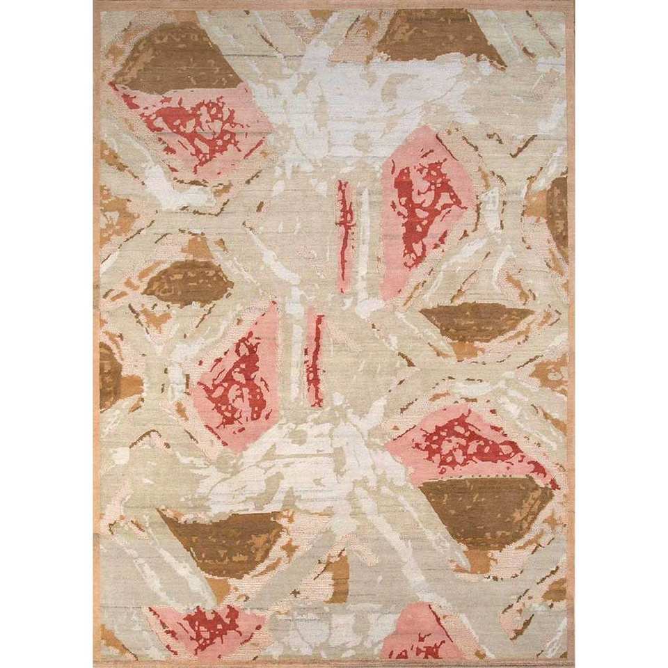 พรมขนสัตว์ถักมือขนาดใหญ่ลายนามธรรมสีเบจและสีน้ำตาลสำหรับตกแต่งห้องนั่งเล่นสำหรับวัยรุ่น-AIWL-3005