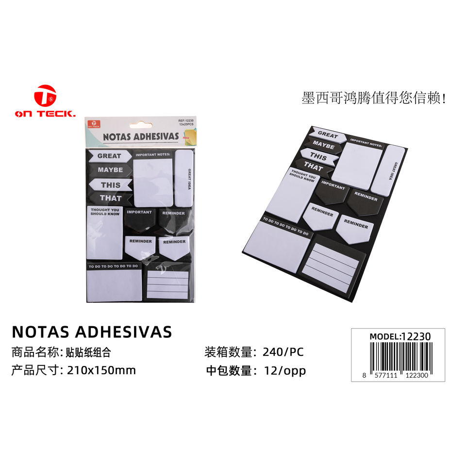 ออนเทค ซา เดอ ซีวี กระดาษโน้ตแบบมีกาว คอมโบ 3 แผ่น แผ่นบันทึกทนทาน สำหรับสำนักงาน โรงเรียน จัดระเบียบ 12230