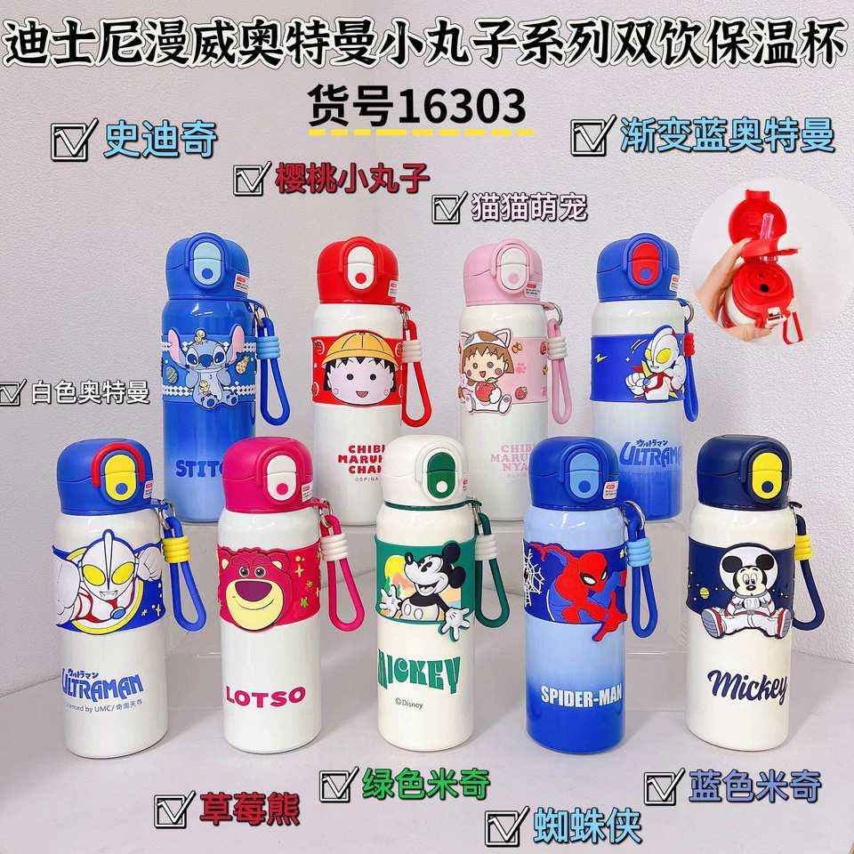 ขวดน้ำเด็กสไปเดอร์แมนลายสติทช์ 500 มล. พร้อมหลอดดูด พกพาสะดวกสำหรับใช้ในโรงเรียน ดีไซน์การ์ตูนน่ารัก