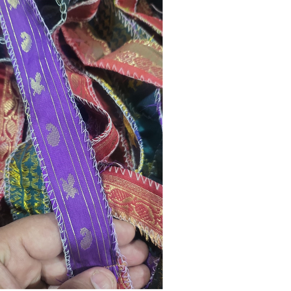 ริบบิ้นผ้าไหมถัก100% จากผ้าทอรีไซเคิลจากผ้าส่าหรีผ้าไหมสำหรับงานปักและถักโดยนักออกแบบเครื่องประดับศิลปินงานฝีมือ