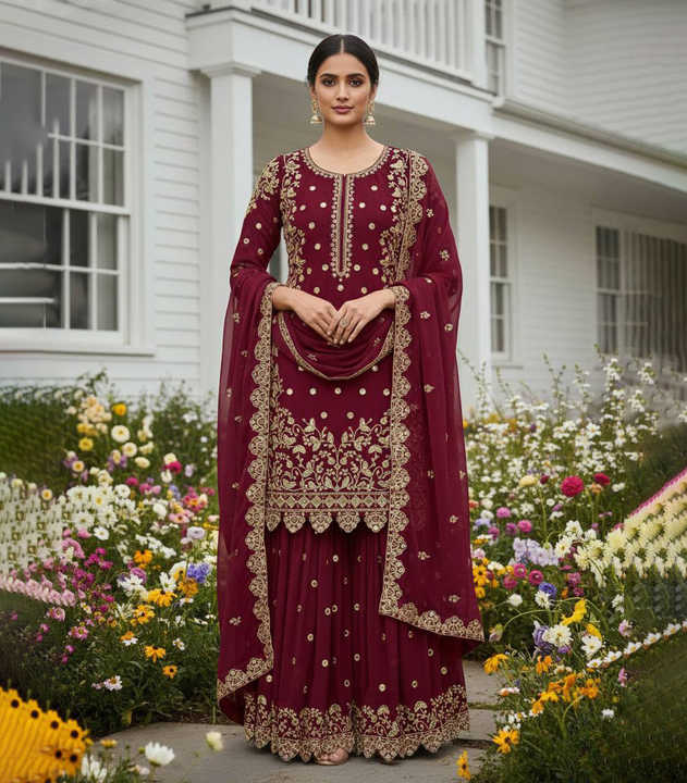 เย็บปักลายชาราราราราราอินเดียแบบดั้งเดิมชุด3ชิ้นผ้าไหม georgette สำหรับงานแต่งงานในฤดูร้อน