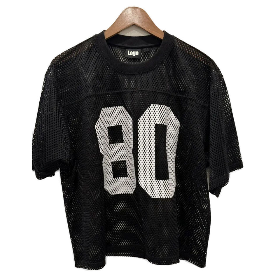 เสื้อฟุตบอลสไตล์อเมริกันตาข่ายระบายอากาศมีไซส์ใหญ่พิเศษความยาวแขนสั้นออกแบบได้ตามต้องการ
