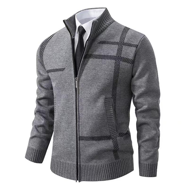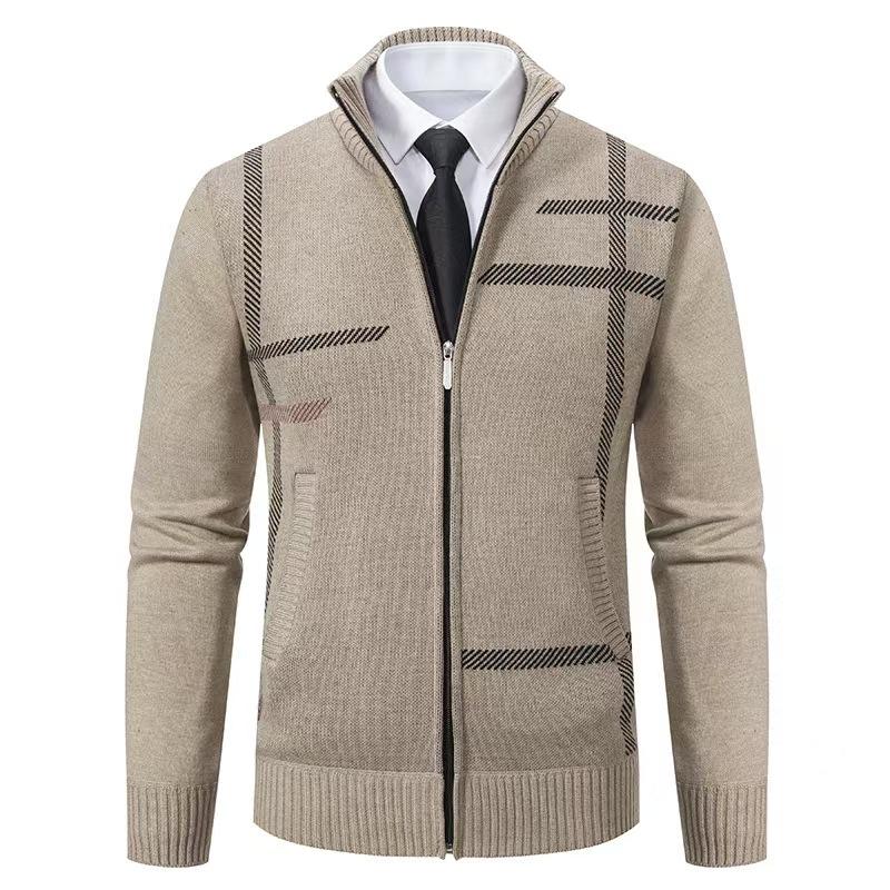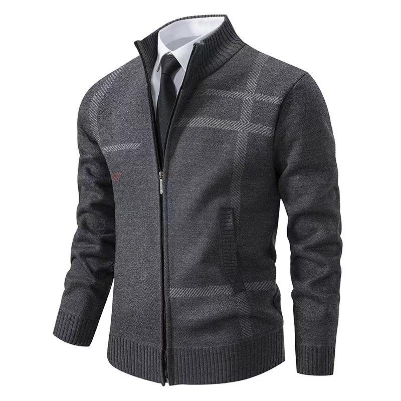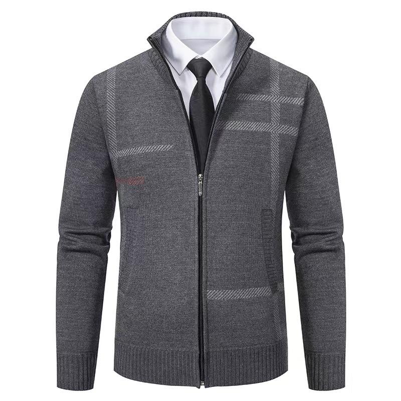 สเวตเตอร์ถักเข้ารูปมีซิปกันยับสำหรับผู้ชายเสื้อสเวตเตอร์มีปกคอตั้งสำหรับฤดูใบไม้ร่วงฤดูหนาว